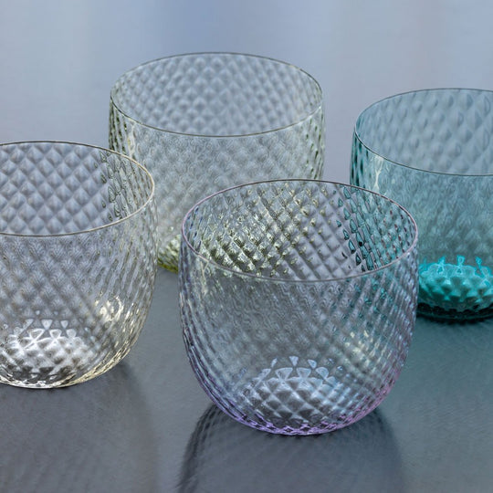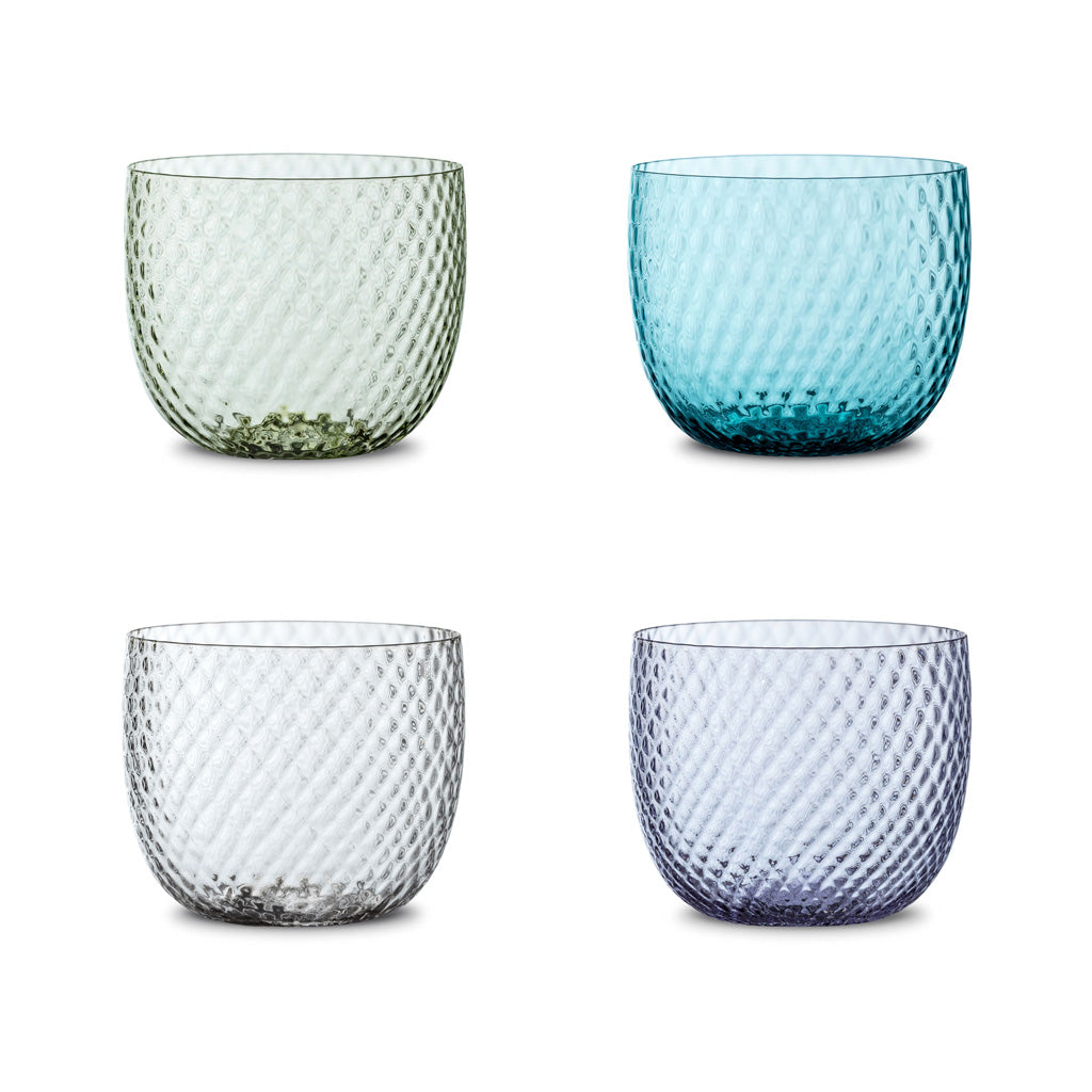 Set: 4 Gläser in der Variante „Raute“ (je 1x Grün, Kristall, Petrol, Violett)