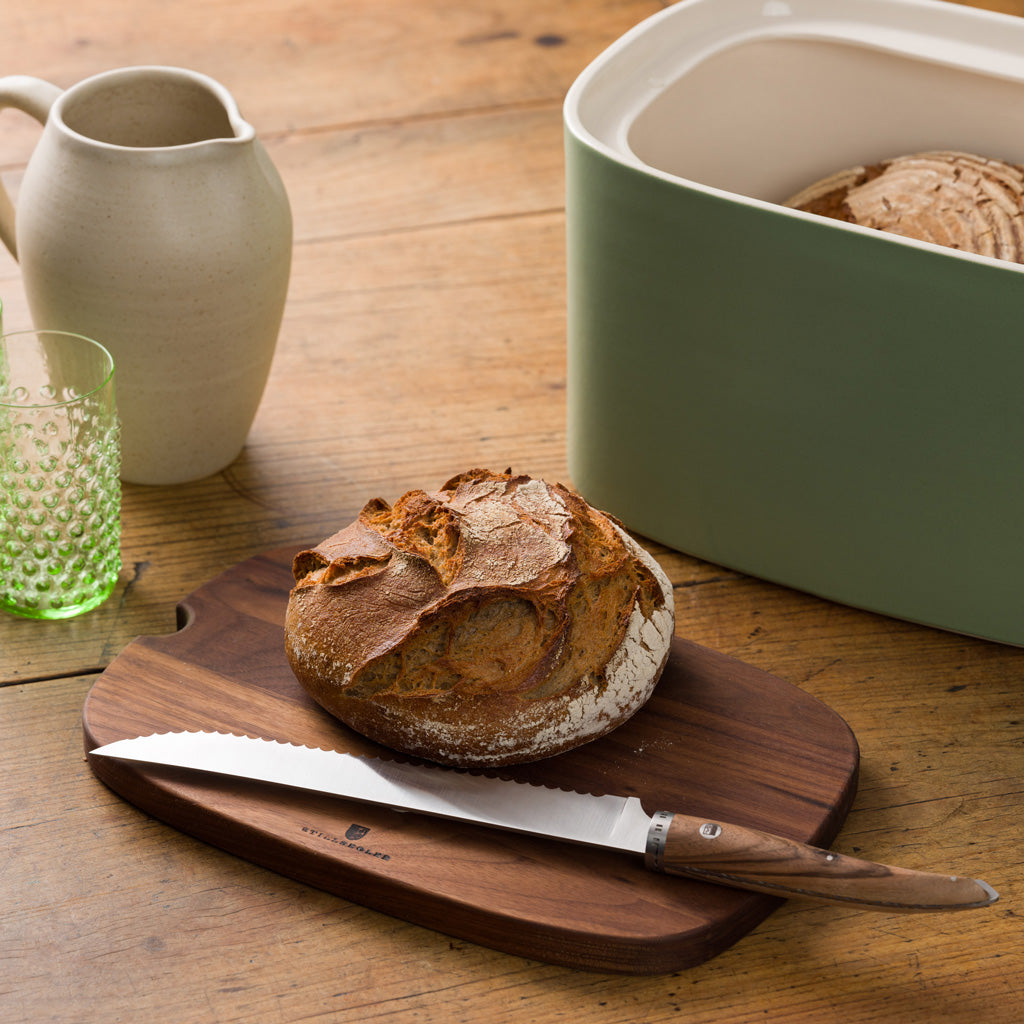 Durch diese vergleichsweise niedrige Temperatur kann ein typisches Glasurbild entstehen, ein sogenanntes Craquelé. Darunter versteht man ein Netz feinster „Risse“ in der Glasur. Die Qualität der Keramik bleibt davon unberührt und trägt keinen Schaden. Im Gegenteil, dieses Glasurbild erzeugt ein „Mikroklima“ im Topf, weil es eine minimale Temperatur- und Feuchtigkeitsregulierung zulässt. Dieser Effekt wirkt sehr positiv auf das gelagerte Brot!