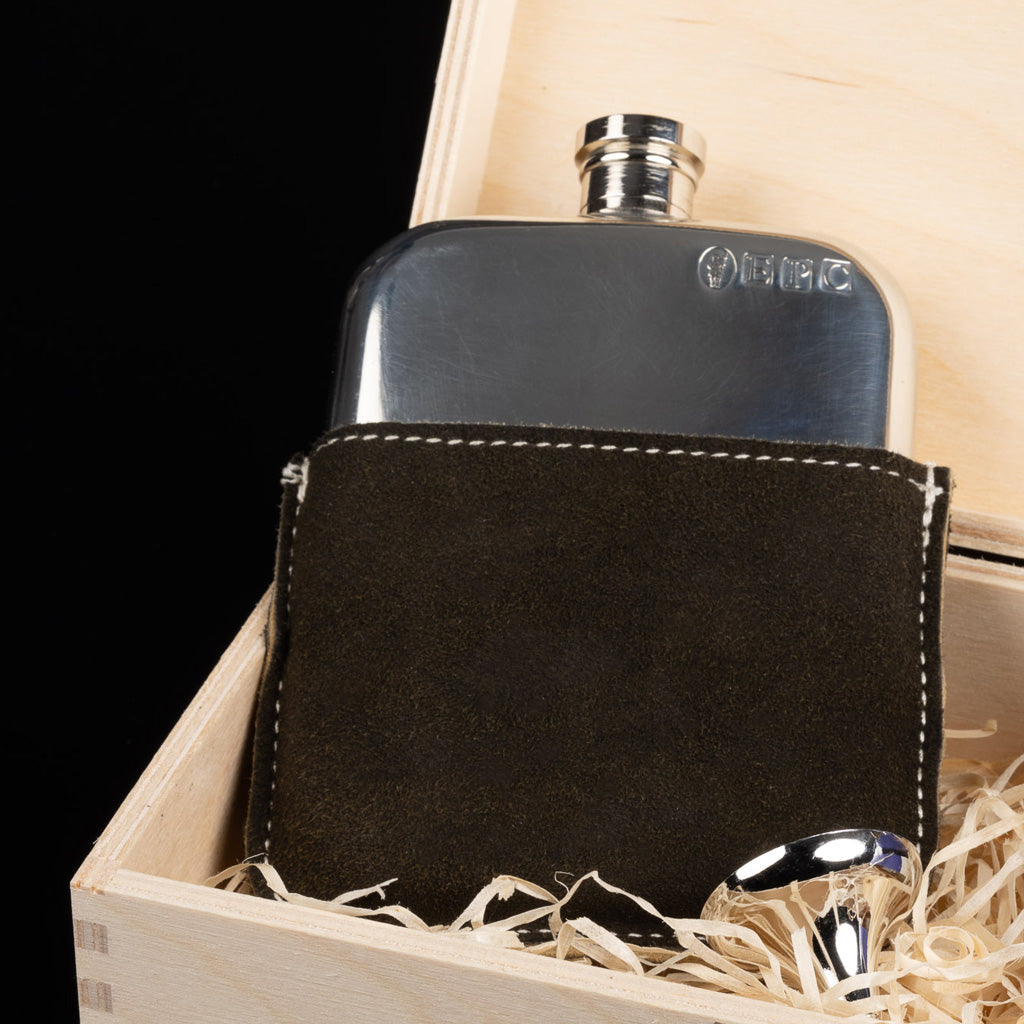 Hergestellt von Hand in England, basierend auf einer über Generationen weitergegebenen Handwerkstradition. Die Hülle wird aus hochwertigem Hirschleder in einer kleinen Lederhosenmanufaktur nördlich des Traunsees konfektioniert. Um dieses Geschenk zusätzlich zu etwas ganz Besonderem zu machen ist auf beiden Hauptseiten eine persönliche Gravur möglich.