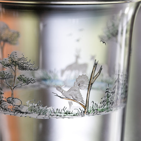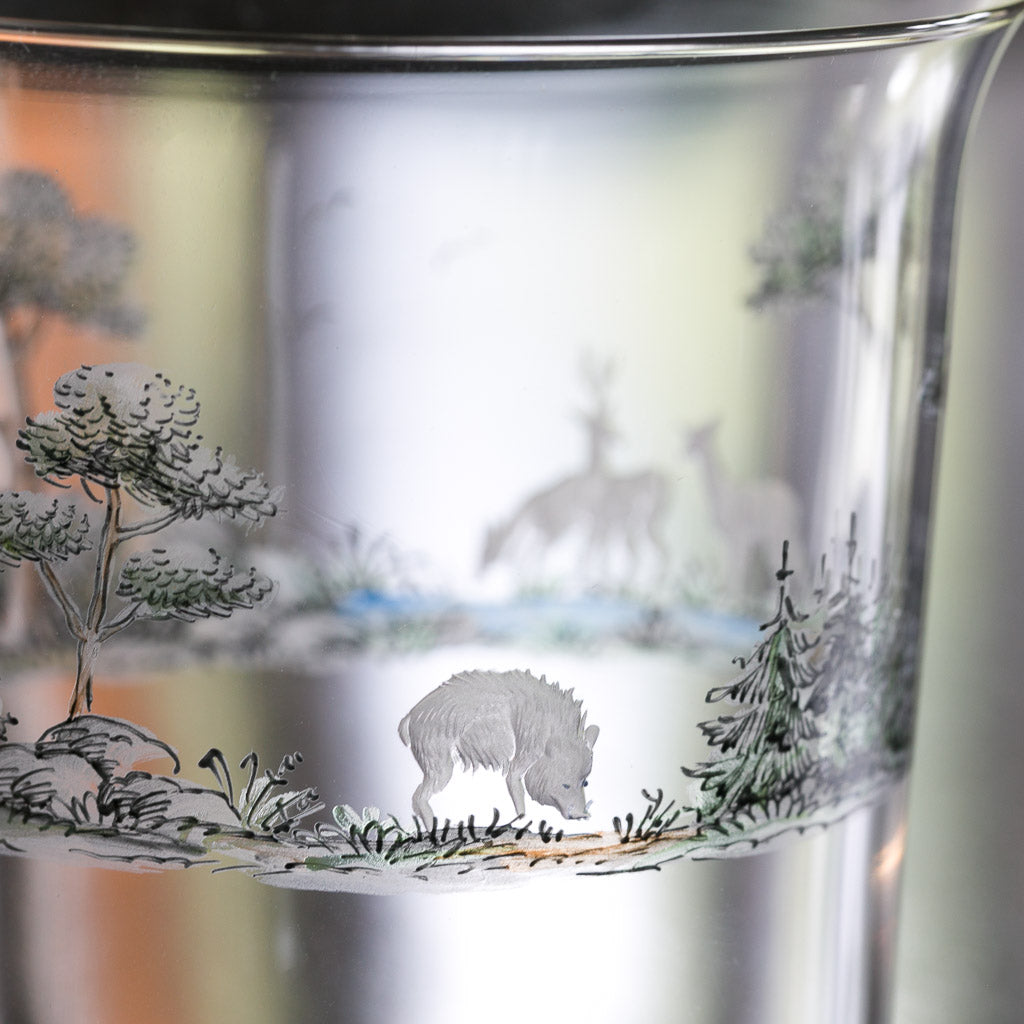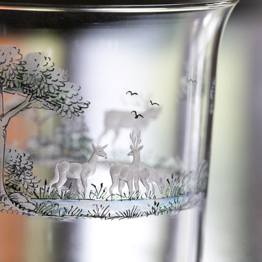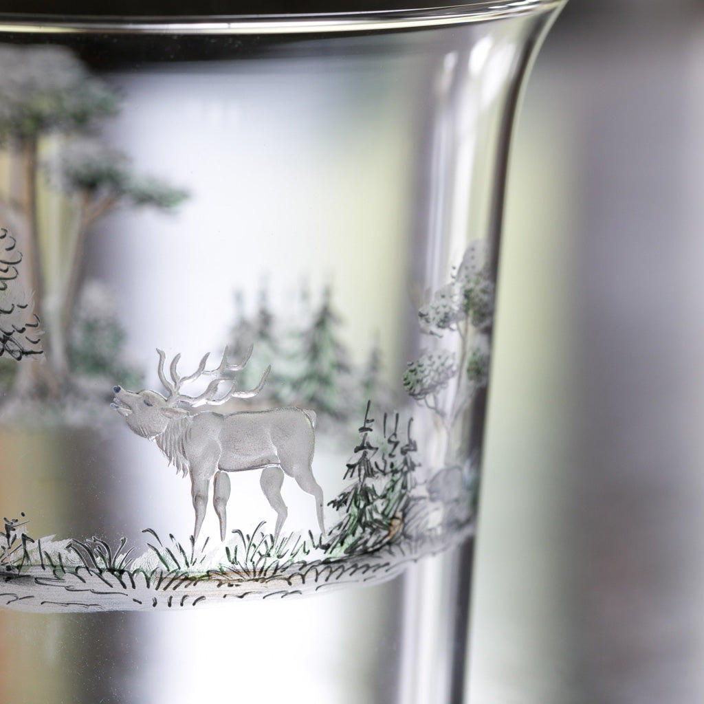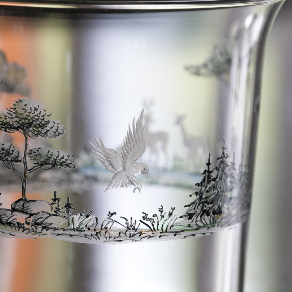 Feines Kunsthandwerk aus traditioneller europäischer Produktion in einzigartiger Kombination aus gekonnter Handmalerei mit überlieferter Kupferrad-Gravur. Hochwertige dünnwandige Glasobjekte, mundgeblasen und stilvoll verziert als Sammlerstücke, für festliche Anlässe oder zum alltäglichen Genuss.