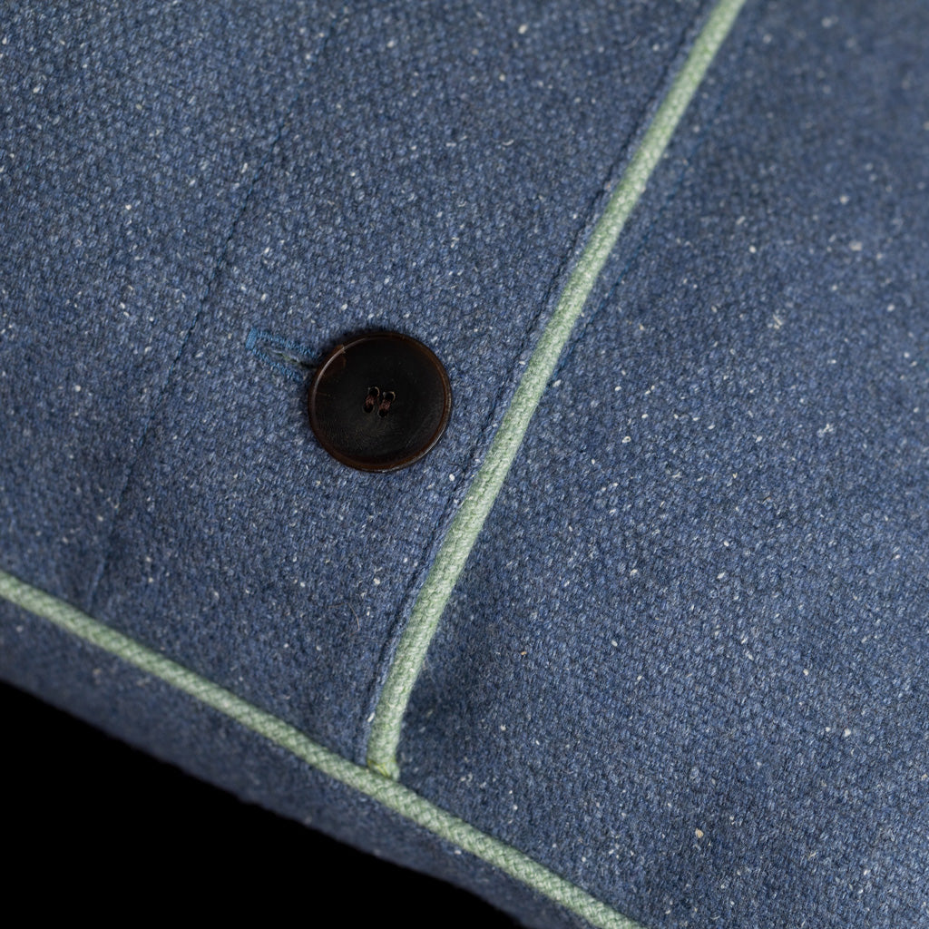 Der Überzug aus „Panama“ Loden besteht aus einer speziellen Webart natürlicher Merino Wolle und wird in einem bayerischen Familienbetrieb hergestellt. Das hochwertige Naturmaterial wird dann in ausgesuchte Farben in einem ”One Woman” Betrieb in Traunkirchen sorgfältig genäht. Die Innenpolster befüllt mit Gänse- und Entenfedern in ÖKOTEX Standard aus zertifiziertem Betrieb in Deutschland.