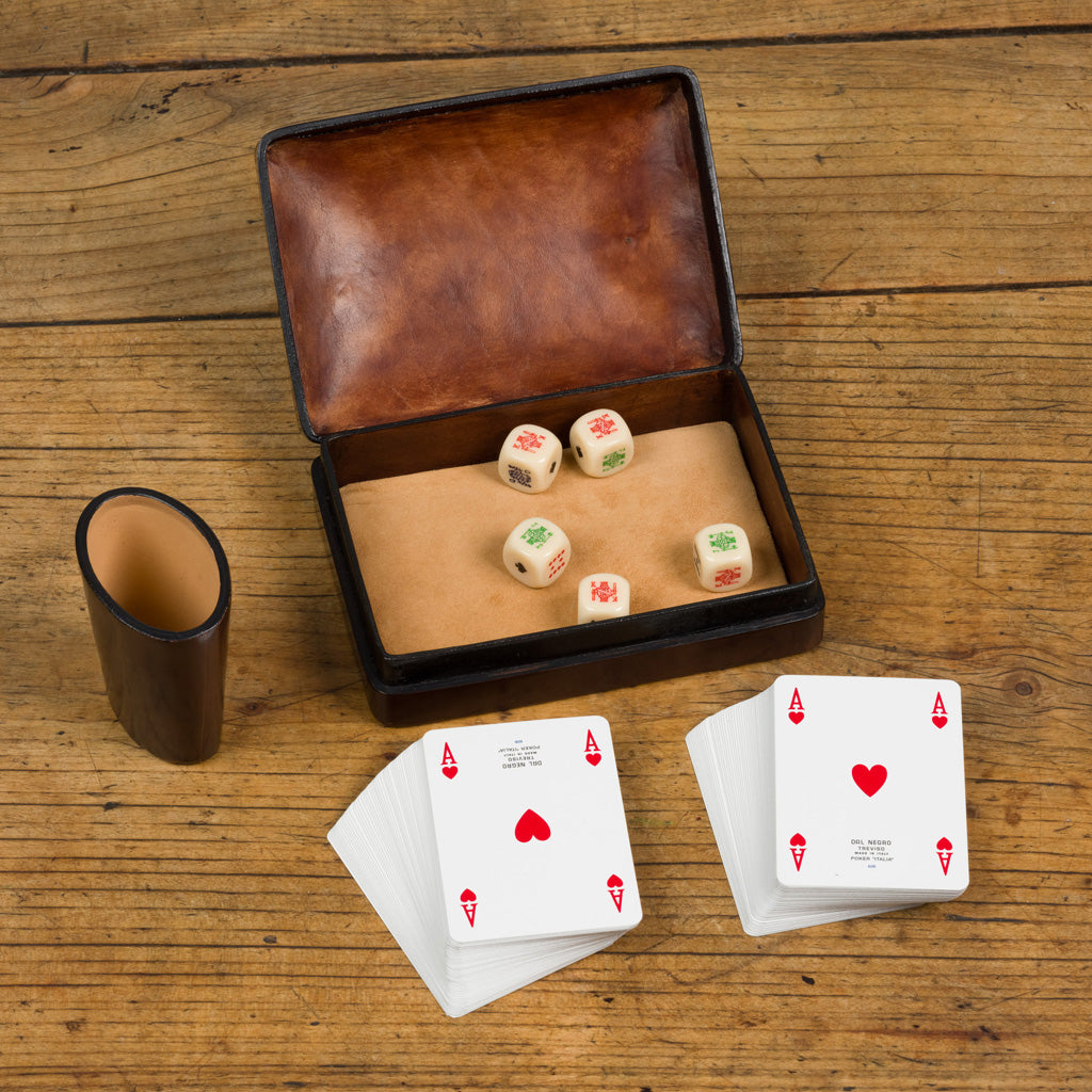 Nobler Würfelbecher von höchster Qualität. Zur Gänze aus feinstem Leder von Hand gefertigt in einer seit Generationen geführten Ledermanufaktur in der Toskana.
