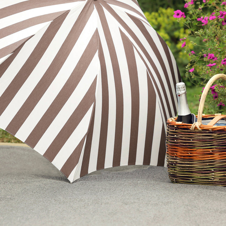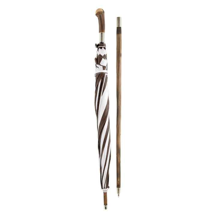 Formschöner Griff und Stock aus Kastanie. Sonnenschirm inklusive passender Tragetasche und Stockverlängerung.