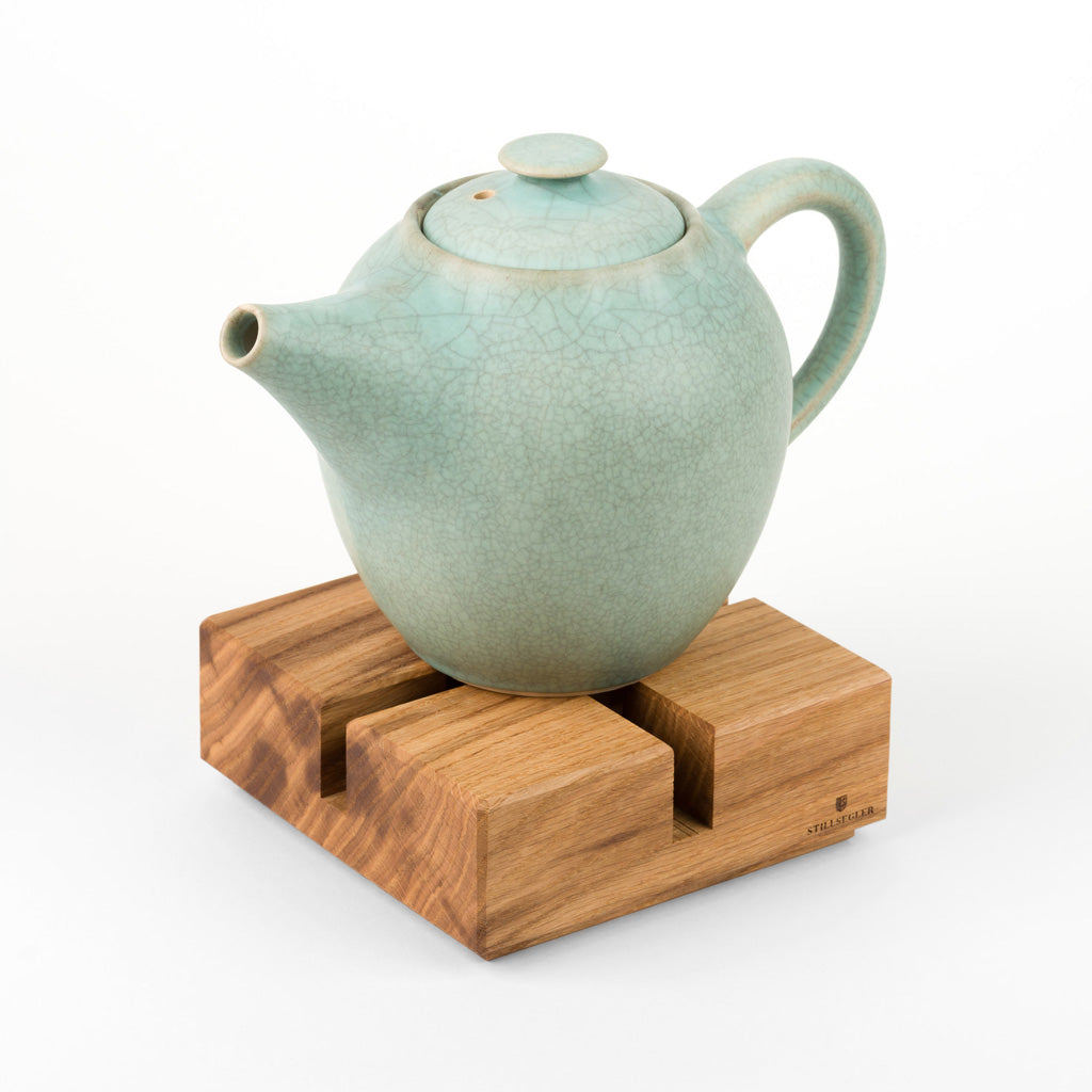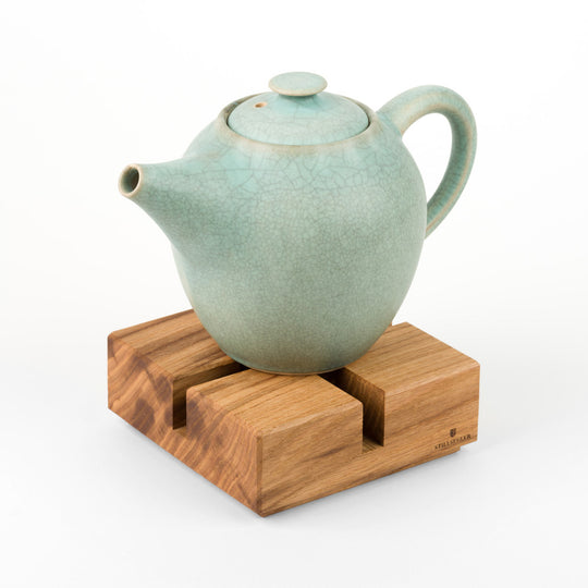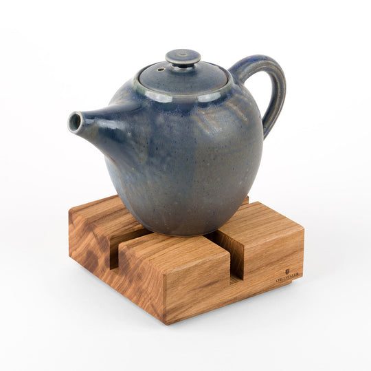 Das nachhaltige Stövchen aus massivem Eichenholz, wird sorgfältig in reiner Handarbeit in Deutschland gefertigt. Eine geölte plane Oberfläche mit zarter Fase an den Kanten eignet sich für Tee- und Kaffeekannen jeder Größe.