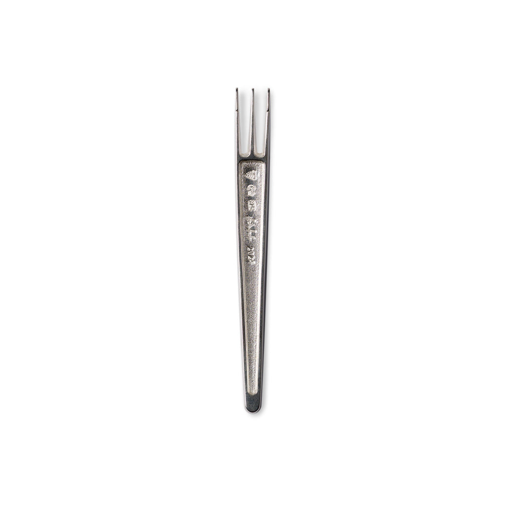 Diese klassische Pommesgabel wurde in Handarbeit aus hochwertigem 925er-Sterlingsilber gefertigt, mit Punzierung versehen samt Signatur des Silberkünstlers, der Feingehalt des Silbers, das Entstehungsjahr und das Hanauer Wappen.
